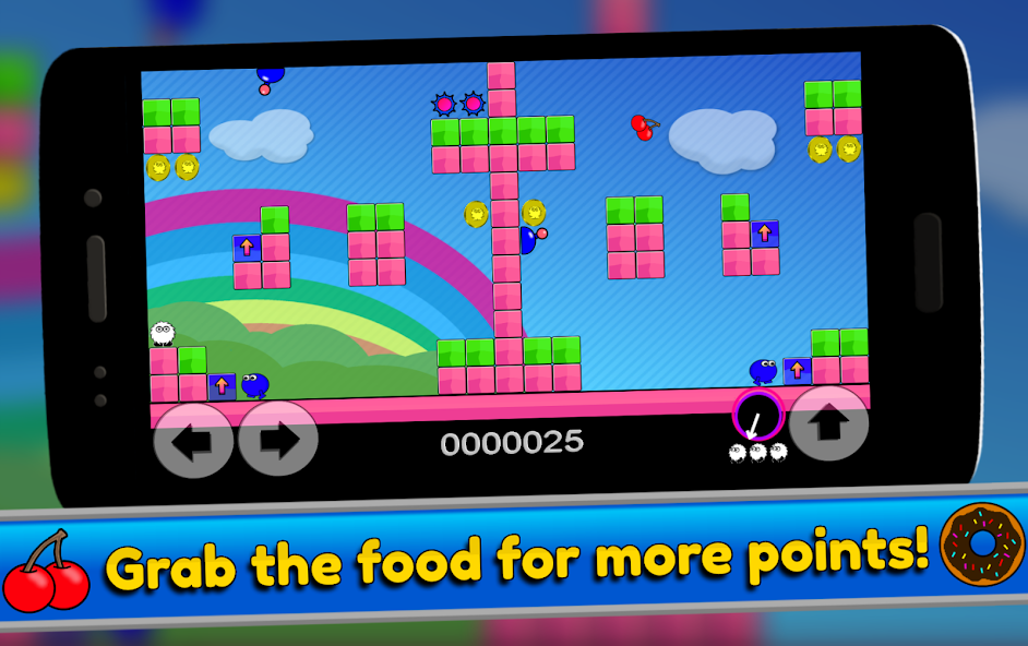 • Musik chip-tune dan efek suara yang ceria dan bergelembung